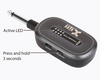 Charge the transmitter and receiver at the same time using the dual USB-C cable and any 5V 2A USB power supply. Charging for two and a half hours gets you 5 hours of play time; 1.25 hours gets you 2 hours of play time, and 30 min of charging gets you 1 hour. The units can be used while charging, but keep in mind that it’s best for the longterm life of the batteries if you don’t leave them plugged in and fully charged for extended periods.